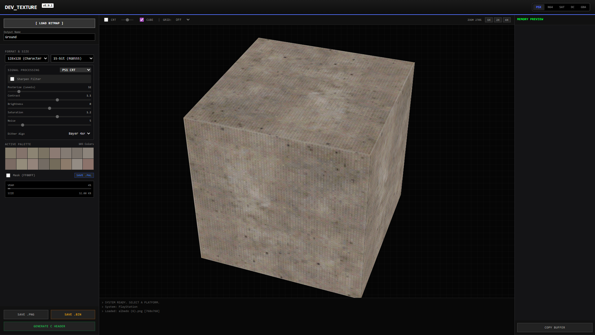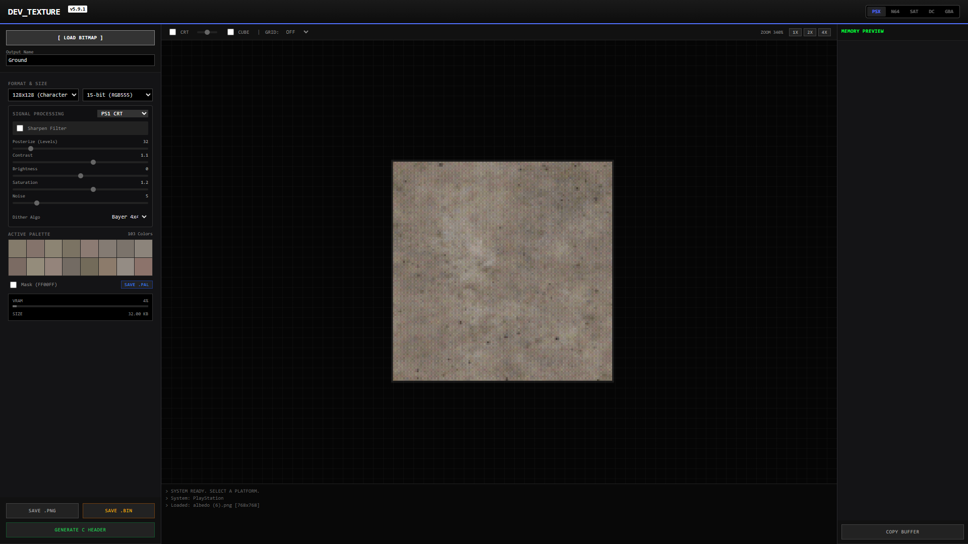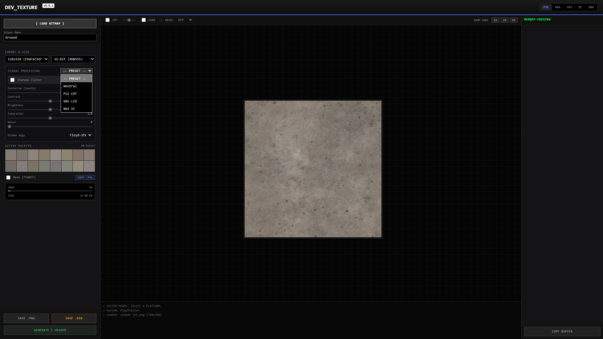 | Tags | converter, development, dithering, n64, ps1, Retro, texture, tool, utility |